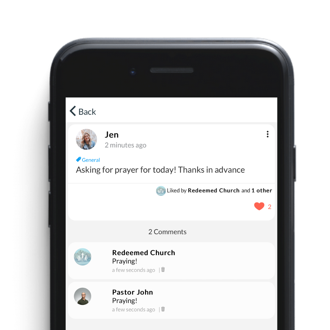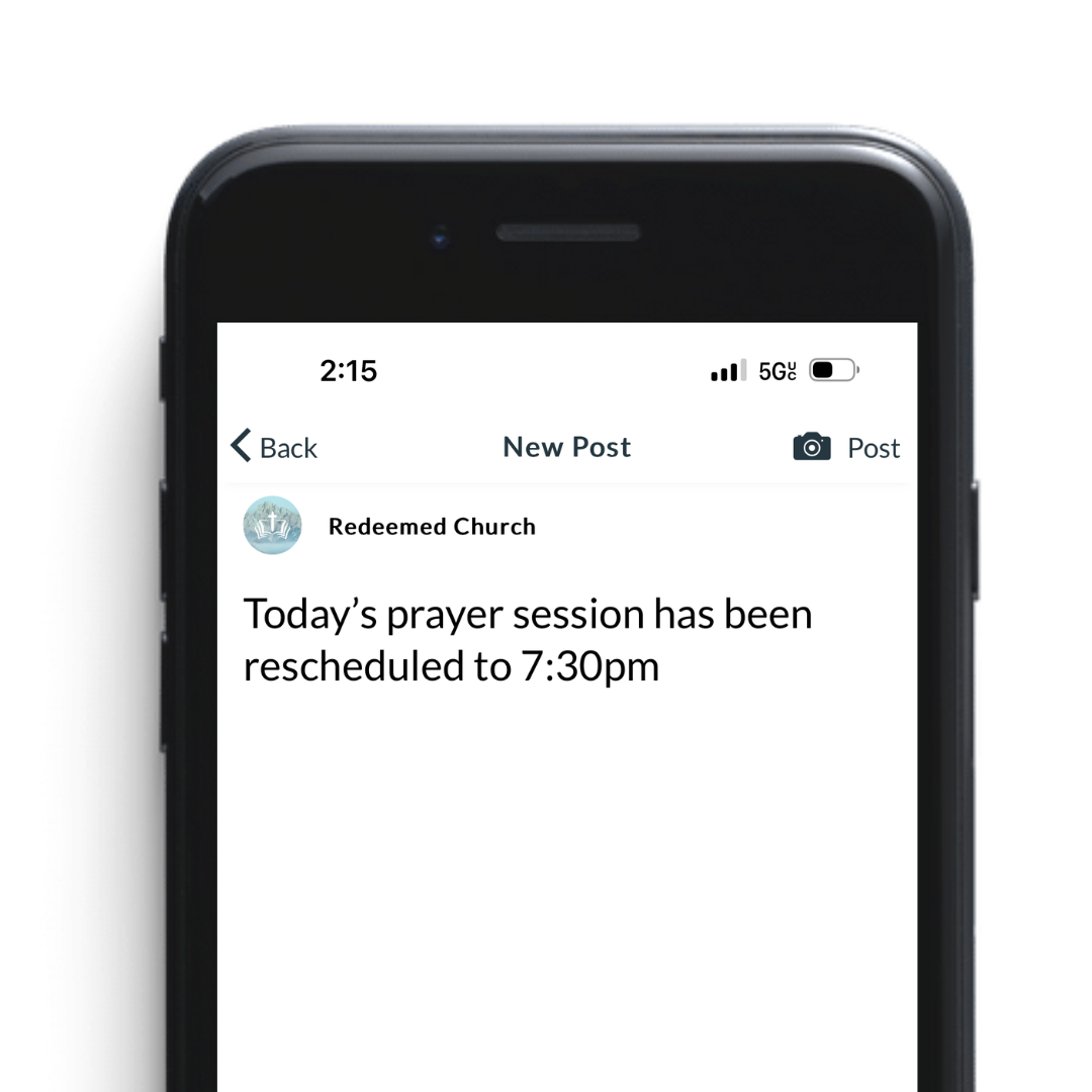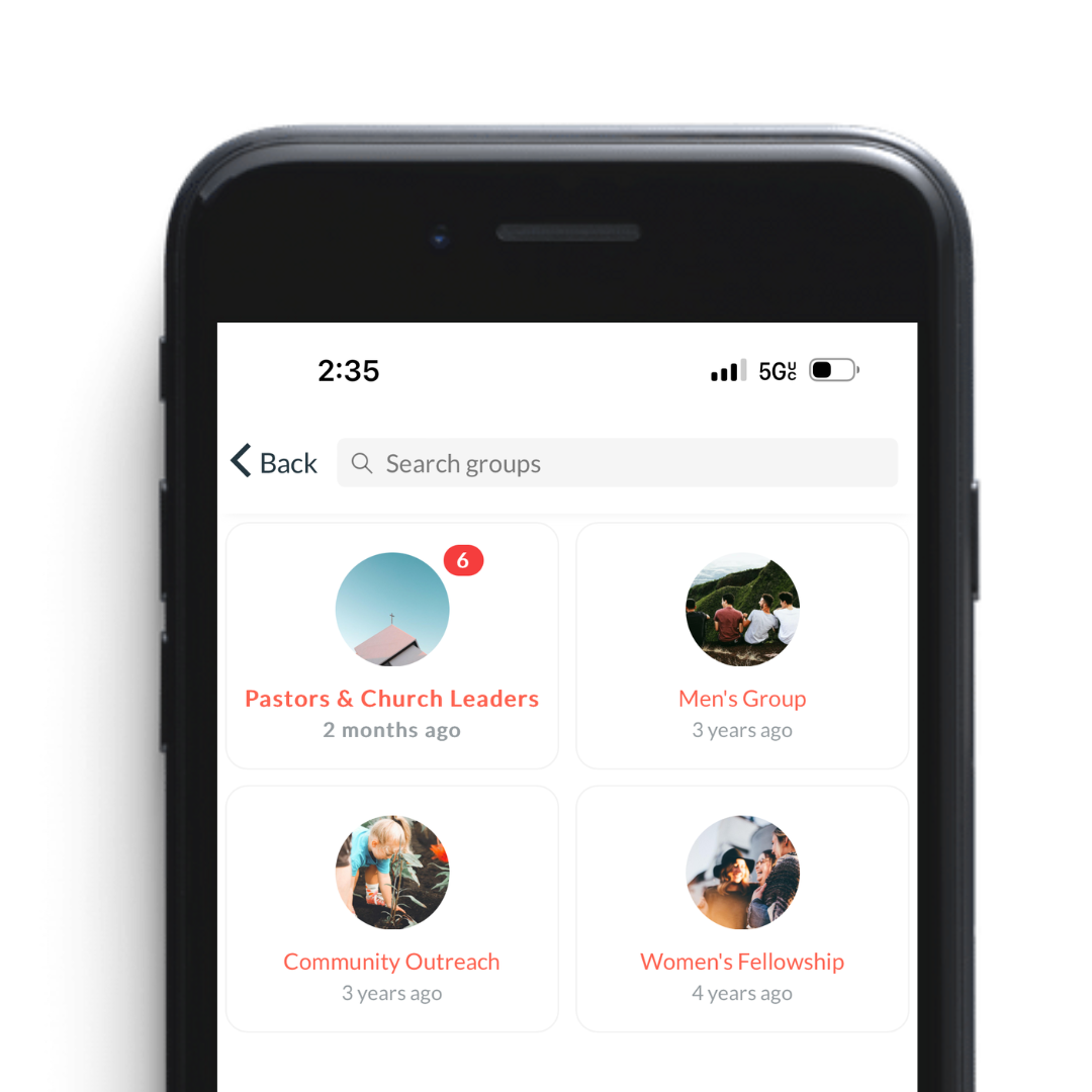 Our app's built-in group messaging feature is perfect for life groups, volunteer teams, staff, and interest-based groups. It’s your go-to tool for seamless communication and coordination.