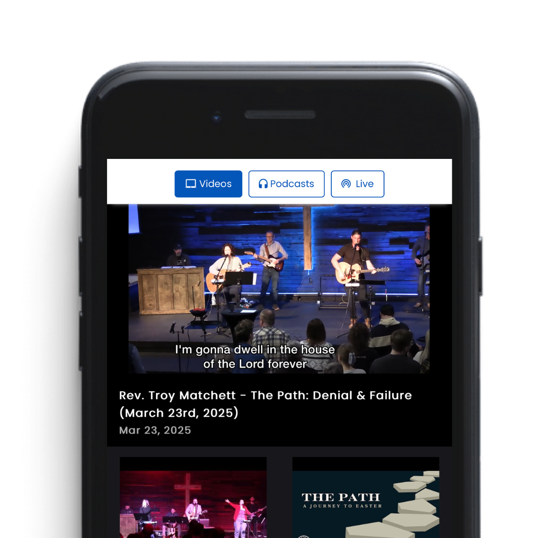 Give your members the freedom to consume your content however they like in your church app. Easily integrate your Live Stream, Video Library, and Audio Podcast to your church app.
